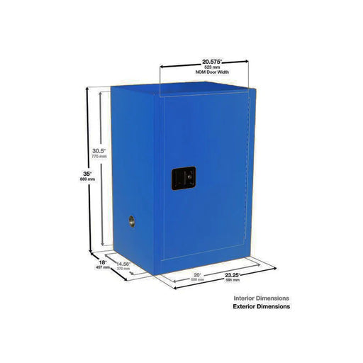 Safety Storage Cabinet 16 Gallon - Acid & Corrosive - 1 Self Closing Door - 1 Shelf - Blue