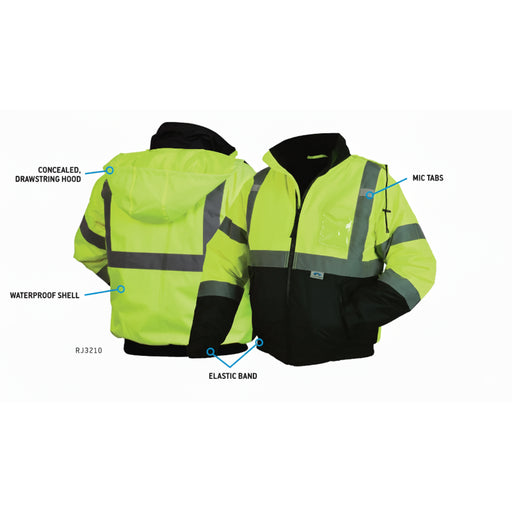 Pyramex® Hi Vis Waterproof Black Bottom Bomber Safety Jacket - Type R ANSI Class 3 - RJ32