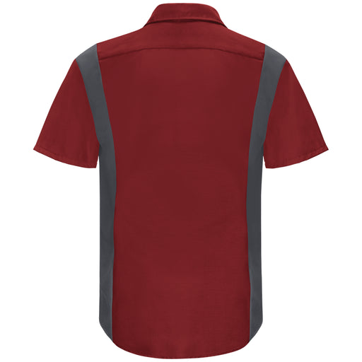 Red Kap® Men's Short Sleeve Performance Plus Shirt - Oilblok Technology - Fireball Red/Charcoal Mesh - SY42 Exclusive OilBlok Technology tackles t...