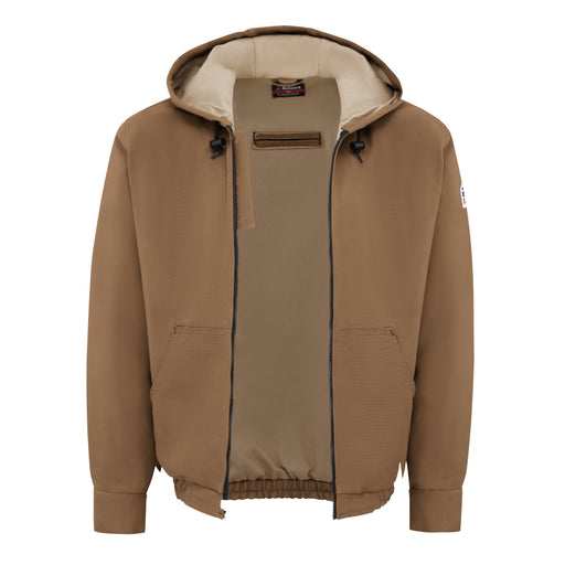 Bulwark® Men's Heavyweight FR Brown Duck Hooded Jacket - JLH4BD Features: Relaxed Fit Non-conductive, Nomex® taped zipper Attached three-piece hoo...