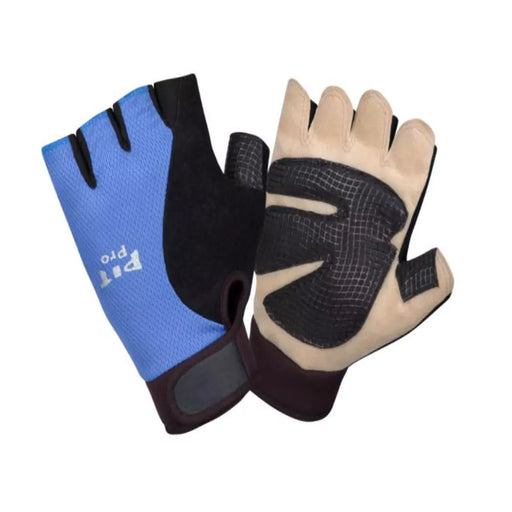 12 Pcs Pack Pit Pro Gloves: Tan Synthetic Leather Palm Black Sure-Grip Reinforced Palm Gel Foam Palm Padding Half-Finger Construction, Blue & ...