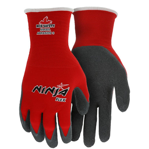 MCR Safety Ninja Flex Latex Coated Gloves - 15 Gauge Nylon Shell - Red - N9680