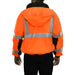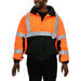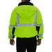 This Hi-Vis Safety Jacket is an ANSI Class 3 compliant Waterproof & Breathable High Visibility Bomber Jacket. It is made with a waterproof, breathable shell of 300 denier woven polyester, removable 200g fleece lining. The black accents along the bottom, cuffs and neck help hide dirt in those frequent contact areas. The detachable hood is waterproof. Other features include: Adjustable cuffs, a zip through collar with full length storm flap to keep you dry, a hidden cell phone pocket under the storm flap, a radio/mic tab on the right shoulder and 3M™ Reflective Material.