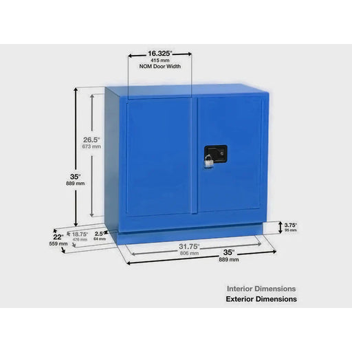 Safety Storage Cabinet 22 Gallon - Acid & Corrosive - 2 Self Closing Doors - 1 Shelf - Blue