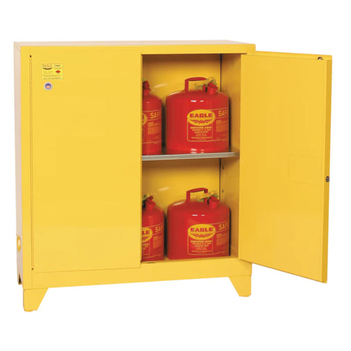 Safety Storage Cabinet 30 Gallon - Flammable - 2 Manual Doors - 1 Shelf - 4" Legs - Yellow