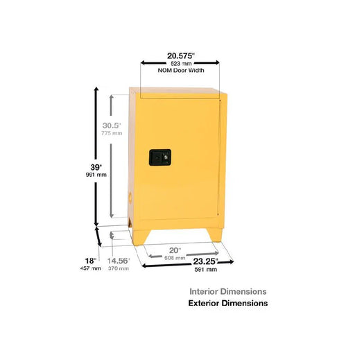 Safety Storage Cabinet 12 Gallon - Flammable - 1 Self Closing Door - 1 Shelf - 4" Legs - Yellow