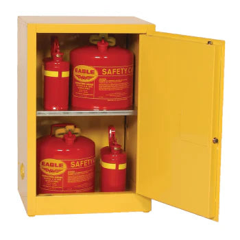 Flammable storage cabinets are essential for safely storing hazardous, flammable liquids in compliance with safety regulations. Designed to minimize fire risks, these cabinets are constructed from durable materials, often featuring double-walled steel for added protection. With ventilation systems, leak-proof sills, and self-closing doors, they help prevent accidents and contain spills. Brightly colored with clear warning labels, flammable storage cabinets ensure that dangerous substances are securely stored while remaining easily identifiable in emergency situations. Ideal for workplaces like laboratories, workshops, and industrial facilities, these cabinets play a critical role in promoting safety and regulatory compliance.
