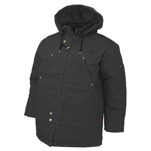 Tough Duck Abraham Hydro Parka with Detachable Snap Off Hood - WJ18 Features Heavy duty brass zip front closure with snap tabs at top and bottom Z...