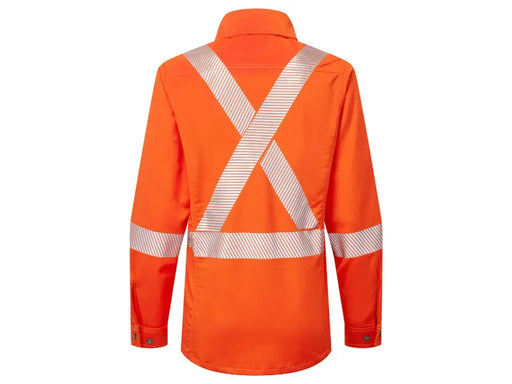 Portwest® Women-s Ultrasoft 7oz Deluxe Refelective Trim Segmented Striped Work Shirt - X Back - Orange - IUS471