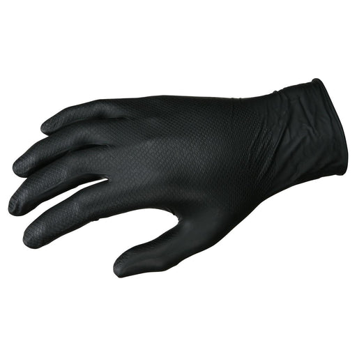 Sold in Box of 100 Pcs Powder free disposable black nitrile gloves 9.5 inches in length 6 mil thickness Fish-scale pattern grip Embossed internal ...