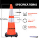 36" Traffic Safety Cone - 10 Lbs - Orange - 6" + 4" Inch Hi Intensity Reflective Collars Features