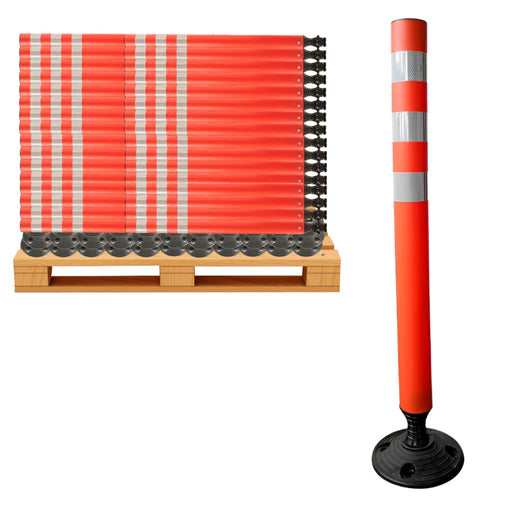 45" Traffic Safety Delineator Post and Base Kit - 3M Reflective Collars - Orange - Bulk Pallet