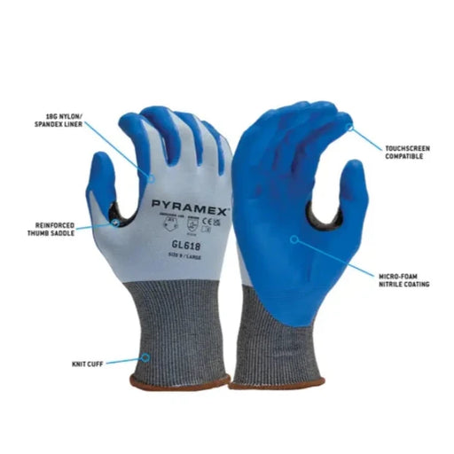 Pyramex® Micro-Foam Nitrile Touchscreen Safety Gloves - ANSI Cut Level 5 - Blue - GL613CB