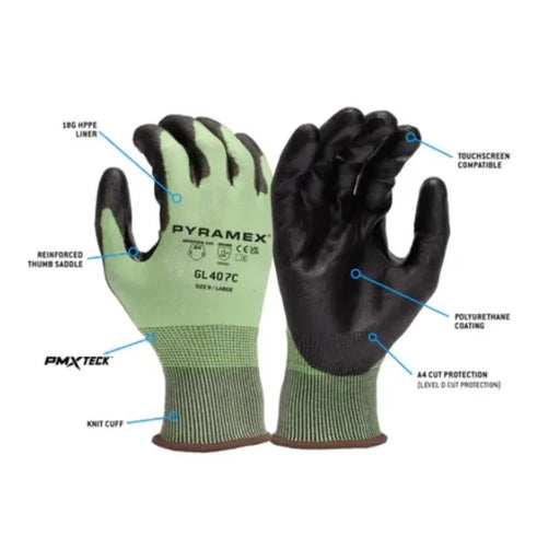 Pyramex® Puncture Resistant Safety Gloves - ANSI Cut Level 4 - Green - GL407C