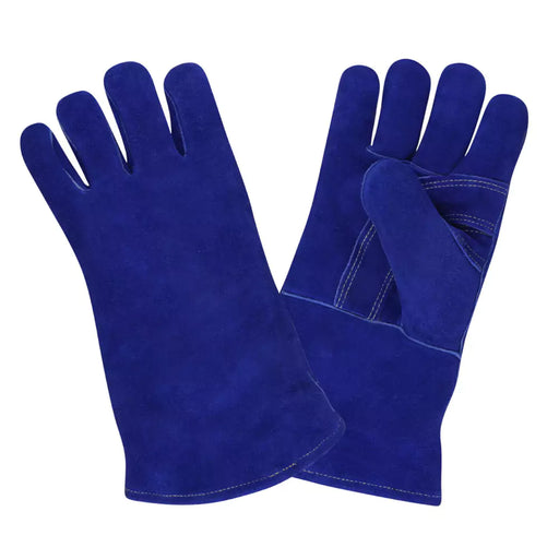 12 Pcs Pack Blue Shoulder Leather Welders Gloves, One Piece Back, Full Sock Lining, Welted Seams Wing Thumb