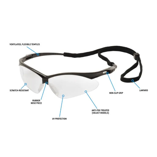 Pyramex® PMXTREME - Rubber Nosepiece and Ventilated Safety Glasses - Anti-fog Features: Built-in rubber nosepiece. Rubber temple tips. Ventilated...