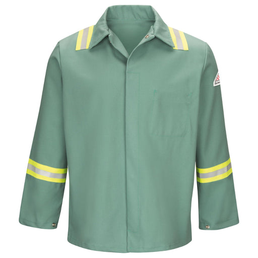 Bulwark® Men's Molten Metal Enhanced Visibility Coat - KEM4 Features: Concealed gripper front closure Hemmed, gored sleeves 2" yellow/silver/yell...