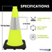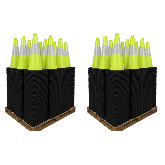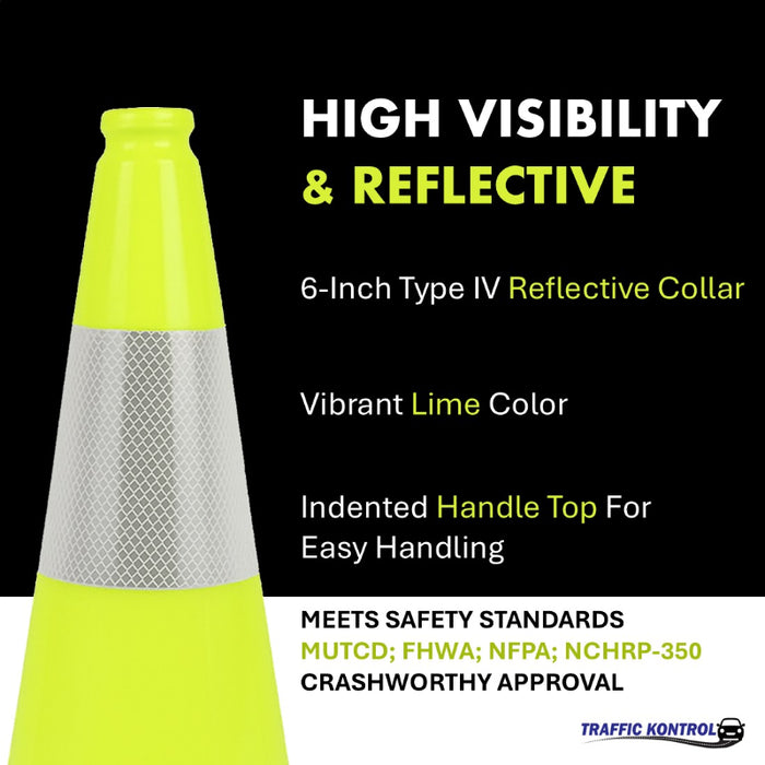 18" Traffic Cone - 3 Lbs - Safety Lime - 6" Inch Hi Intensity Reflective Collars - Bulk Pallet
