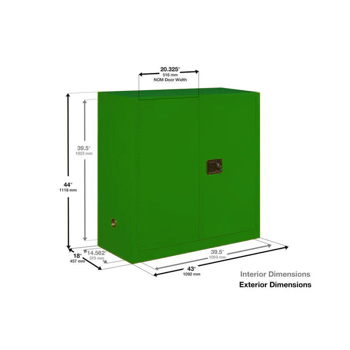 Safety Storage Cabinet 30 Gallon - Pesticides - 2 Manual Doors - 1 Shelf - Green