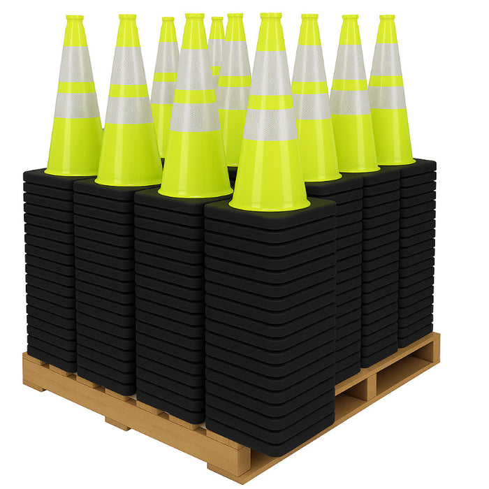 36" Traffic Cone - 10 Lbs - Safety Lime - 6" + 4" Inch Reflective Collars - Bulk Pallet