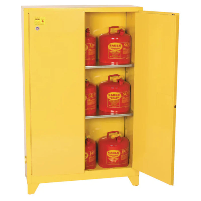 Safety Storage Cabinet 45 Gallon - Flammable - 2 Manual Doors - 2 Shelves - 4" Legs - Yellow