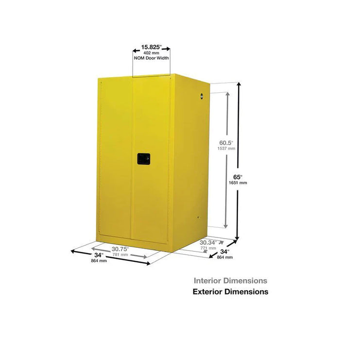 Safety Storage Cabinet 60 Gallon - Flammable - 2 Manual Doors - 2 Shelves - Yellow
