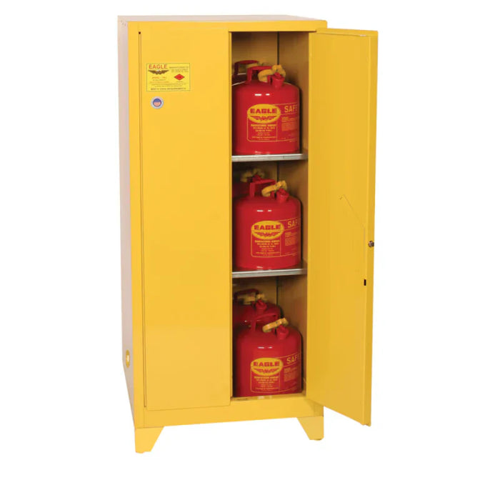 Safety Storage Cabinet 60 Gallon - Flammable - 2 Manual Doors - 2 Shelves - 4" Legs - Yellow