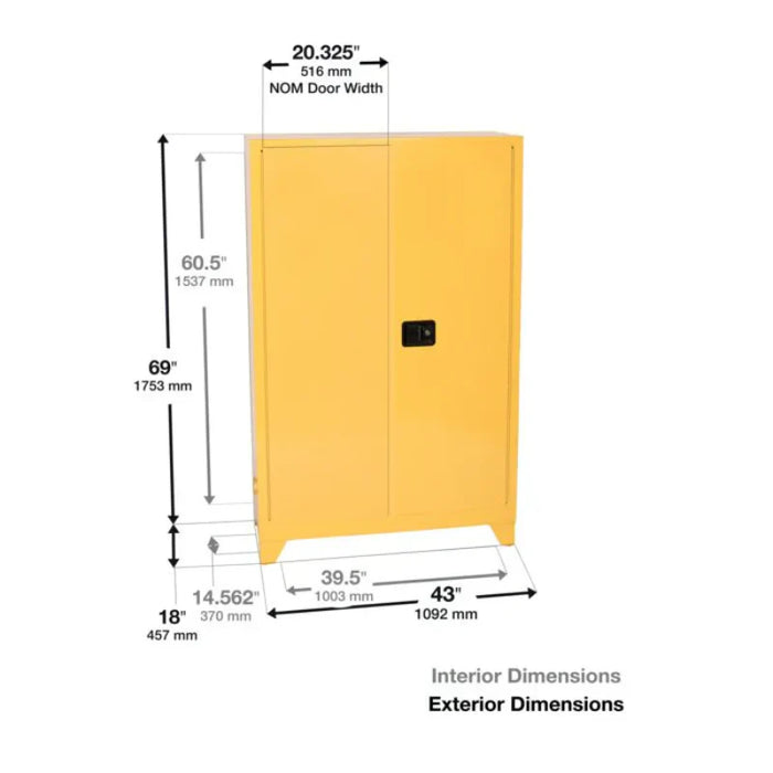 Safety Storage Cabinet 60 gallon - Paint & Ink - 2 Manual Doors - 5 Shelves - Yellow