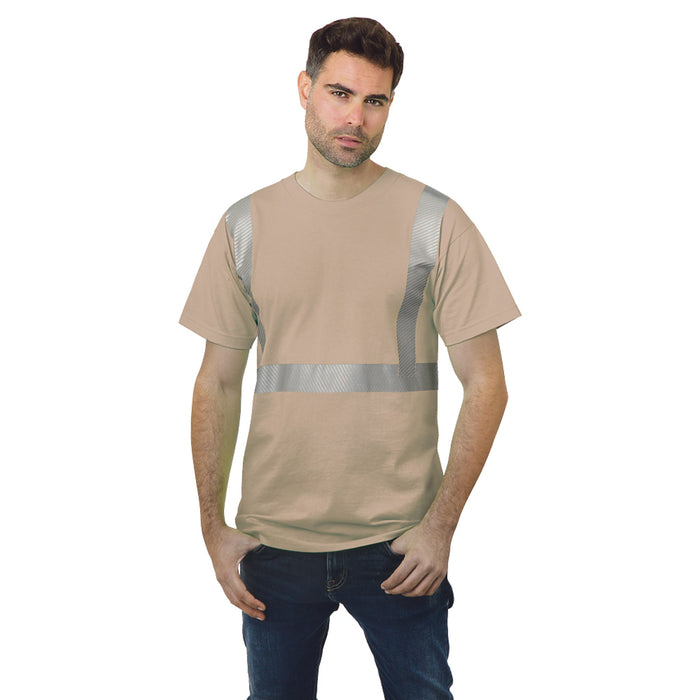 MADE IN USA Hi-Vis Short Sleeve T-Shirt - Segmented Striping - 100% Cotton - Sand - 3700