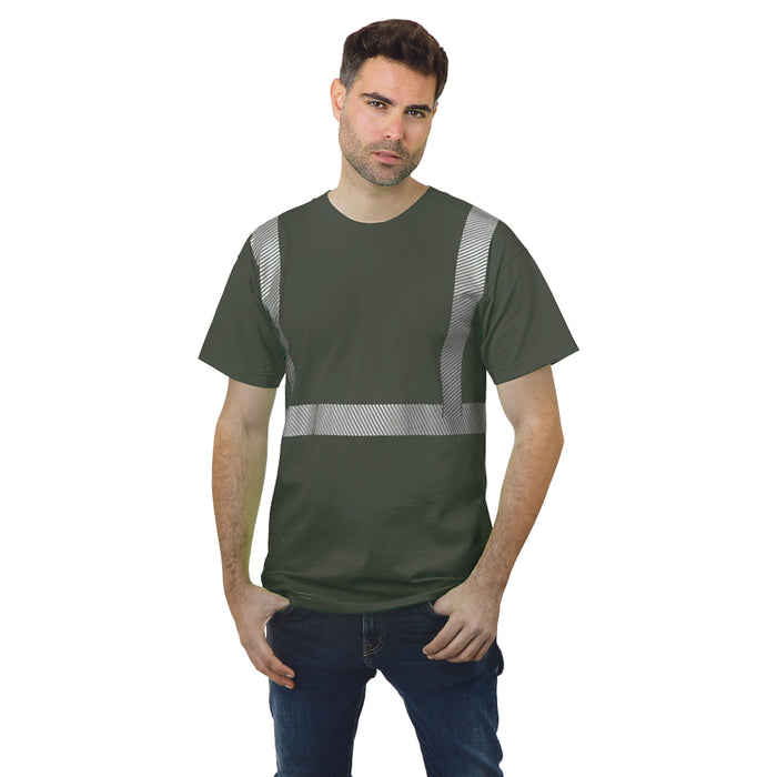 MADE IN USA Hi-Vis Short Sleeve T-Shirt - Segmented Striping - 100% Cotton - Tobacco - 3700