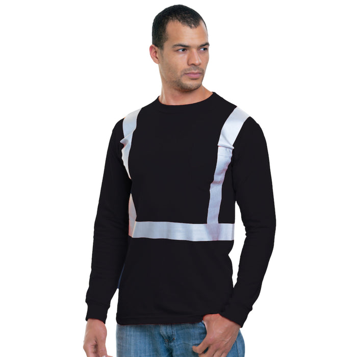 MADE IN USA Hi-Vis Long Sleeve T-Shirt - Pocket - Solid Striping - 100% Cotton - Black - 3781