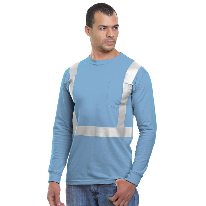 MADE IN USA Hi-Vis Long Sleeve T-Shirt - Pocket - Solid Striping - 100% Cotton - Carolina Blue - 3781