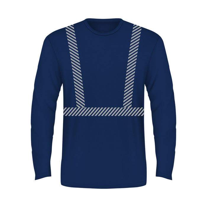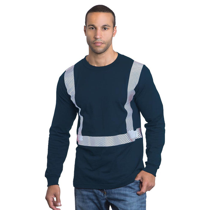 MADE IN USA Hi-Vis Long Sleeve T-Shirt - Segmented Striping - 100% Cotton - 3705 - Navy