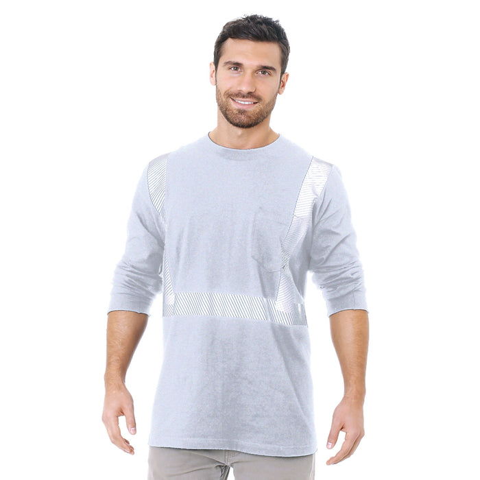 MADE IN USA Hi-Vis Long Sleeves T-Shirt - Pocket - Segmented Striping - 100% Cotton - ASH - 3712