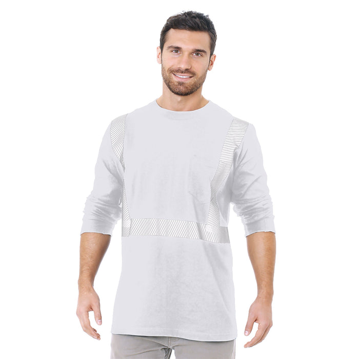 MADE IN USA Hi-Vis Long Sleeves T-Shirt - Pocket - Segmented Striping - 100% Cotton - White - 3712