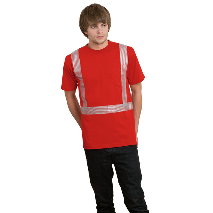MADE IN USA Hi-Vis Short Sleeves T-Shirt - Pocket - Segmented Striping - 100% Cotton - Red - 3710