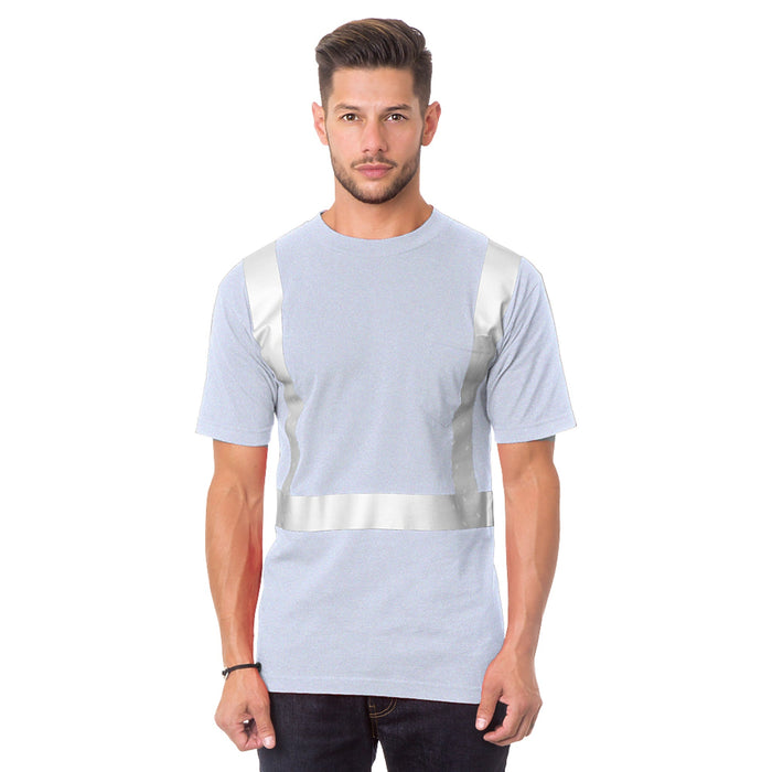 MADE IN USA Hi-Vis Short Sleeve T-Shirt - Pocket - Solid Striping - 100% Cotton - ASH - 3771