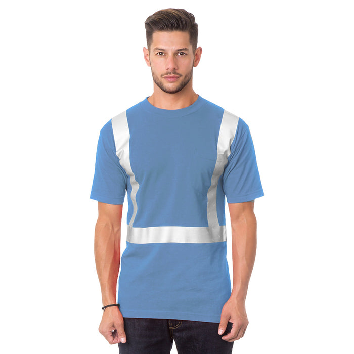 MADE IN USA Hi-Vis Short Sleeve T-Shirt - Pocket - Solid Striping - 100% Cotton - Carolina Blue - 3771