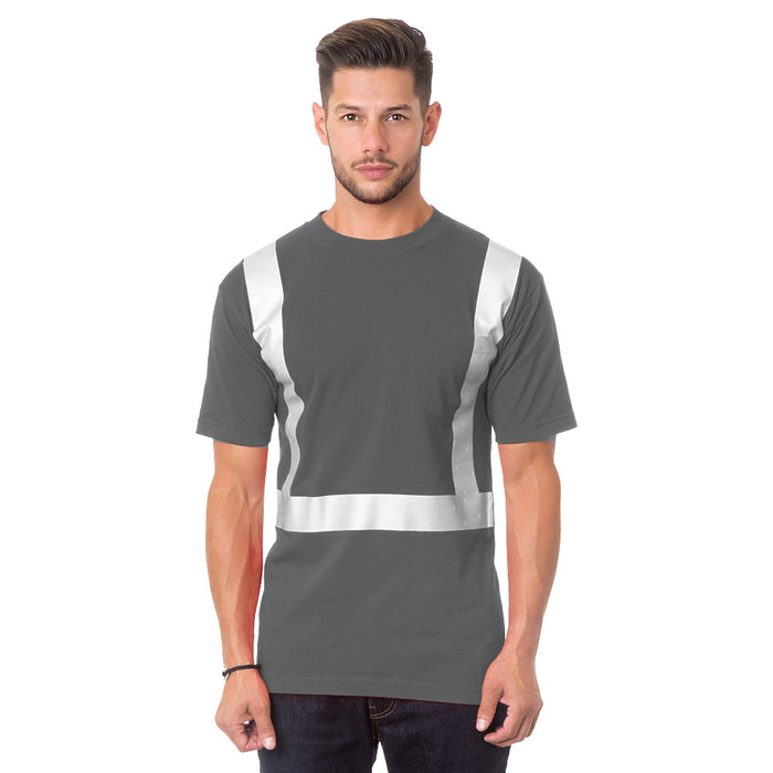 MADE IN USA Hi-Vis Short Sleeve T-Shirt - Pocket - Solid Striping - 100% Cotton - Charcoal - 3771