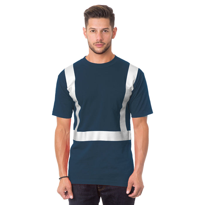 MADE IN USA Hi-Vis Short Sleeve T-Shirt - Pocket - Solid Striping - 100% Cotton - Navy - 3771
