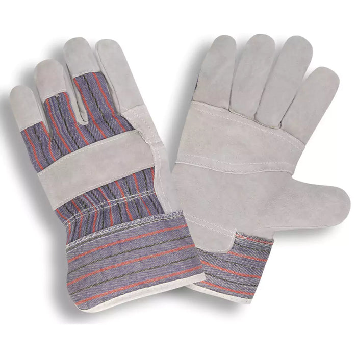 This cowhide, split leather palm is derived from the shoulder section of the hide. The standard/regular and economy cuts are selected from the middle and lower portions of the hide, making them thinner than other grades, but still durable and more economical. Cowhide is also comfortable and abrasion resistant. This glove features a denim back and 2.5-inch denim safety cuff, a patch palm, and gunn pattern.