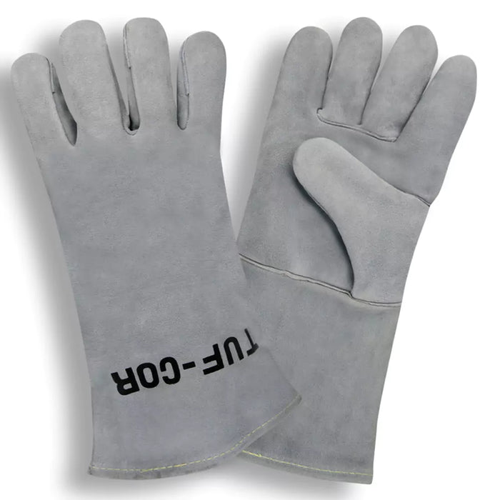 CORDOVA SAFETY PRODUCTS grades leather according to the area on the hide from which it is cut. The premium-grade leather comes from side or shoulder and from areas higher on the animal that receive the least amount of movement. Select-grade leather is selected from the areas of the hide that don€™t quite make the Premium grade, but are still a higher-quality leather. Cowhide is comfortable, durable, breathable and offers excellent abrasion- and heat-resistance. The CORDOVA SAFETY PRODUCTS brand Tuf-Cor select shoulder split, leather welder features a full sock lining and fully welted seams. It is Aramid-sewn for increased durability and strength and offers a wing thumb, for open-handed work.
