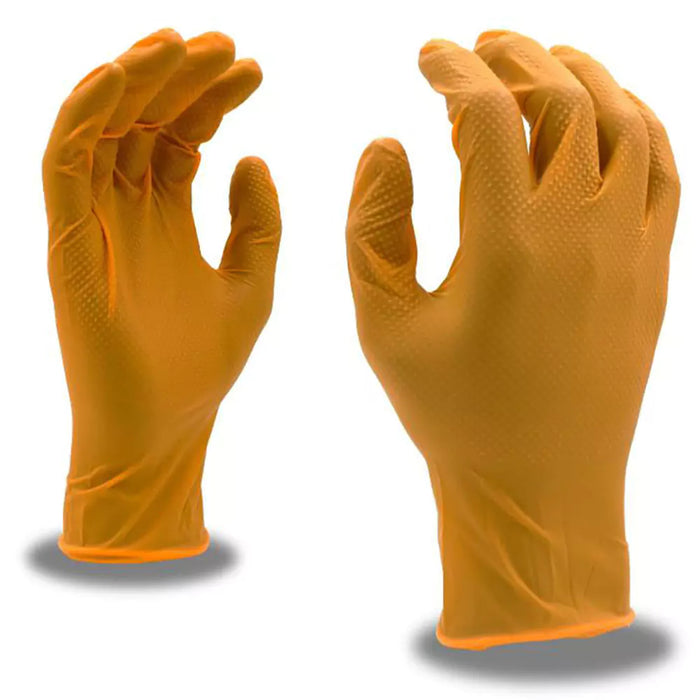 Nitri-Cor Diamond™, Orange, Nitrile Examination, Gloves, Diamond Embossed Grip, Powder Free, 6-mil Palm Thickness, 245 mm. (9.5-inch) length, Beaded Cuff
