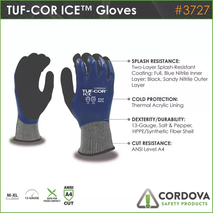 Cordova Safety Tuf-Cor Ice Impact Gloves - 13-Gauge ANSI Cut Level A4 - 3727TPR