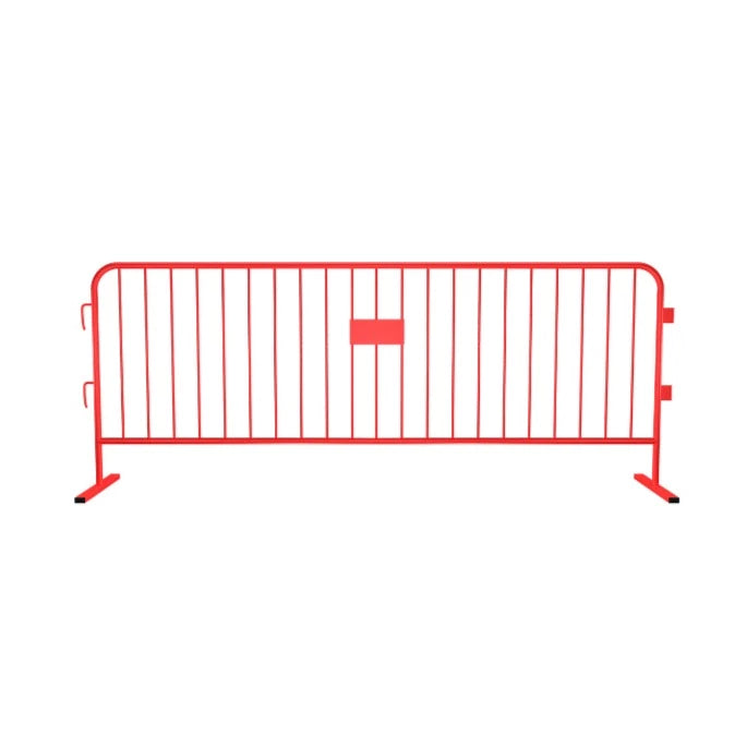 Crowdmaster® Crowd Control Powder Coated Steel Barricade - HD Flat Feet - 8.5 Ft Long - Red