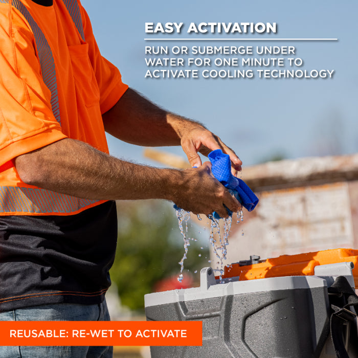The Chill-Its 6603 Evaporative Cooling Band features advanced PVA cooling technology for relief in extreme heat. When wet, this band remains lightweight and comfortable for bulk-free wear around the neck. A unique pull-through design allows the band to be secured around the neck for all-day cooling that stays put. Rated to UPF 50+ protection from harmful UV rays. Heat-related illness continuously ranks among the top causes of worksite accidents and fatalities. Evaporative cooling technologies such as PVA (polyvinyl alcohol) are a simple, effective and comfortable solution for heat stress prevention. Similar to how sweat cools the body, evaporative technologies use an external water source to draw heat away—helping to regulate body temperature while providing cool relief. When activated, this PVA cooling towel is comfortable and refreshing for even the hottest days of the year.