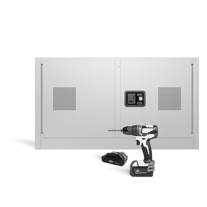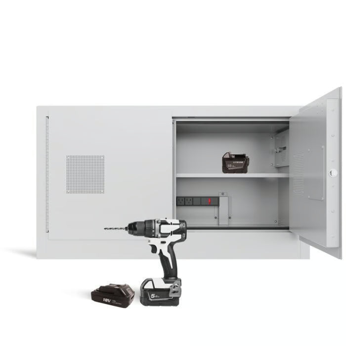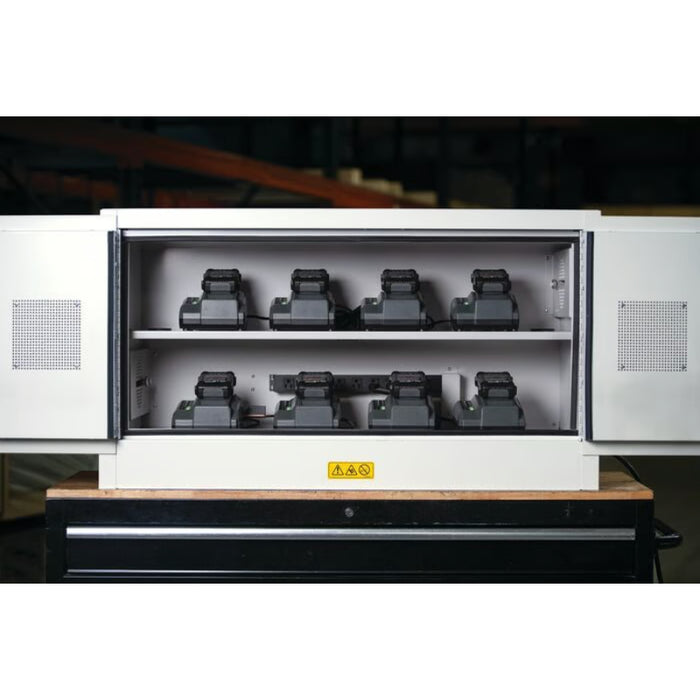 Featuring a patent-pending design, this cabinet offers top-tier protection while enabling simultaneous charging of up to eight batteries, with a total capacity of 4kWh. Its lightweight, benchtop construction allows for easy relocation, and the lockable doors provide secure access control to safeguard lithium-ion batteries and deter theft.
