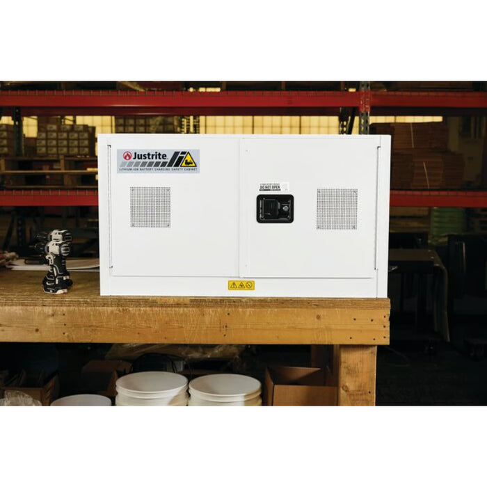 Justrite® Lithium-Ion Battery Charging Cabinet - 2 Manual Doors - Color Gray - 231703 Features: