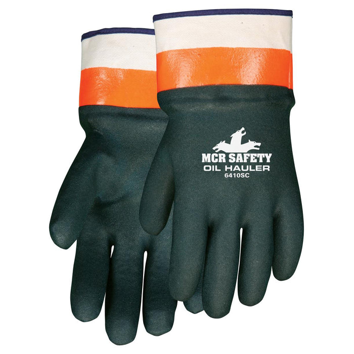 Our premium Oil Hauler gloves are made to take the abuse from oils and solvents, petrochemicals, and refining. The 6410SC features a double coating of PVC with a sandy textured finish to aid with your grip. Other features include a soft jersey lining and a protective safety cuff. The inside of each glove is treated with ActiFresh® to prevent odors and eliminate bacteria caused by perspiration. If you are looking for the best PVC-coated work gloves to get the job done, look no further than MCR Safety!
