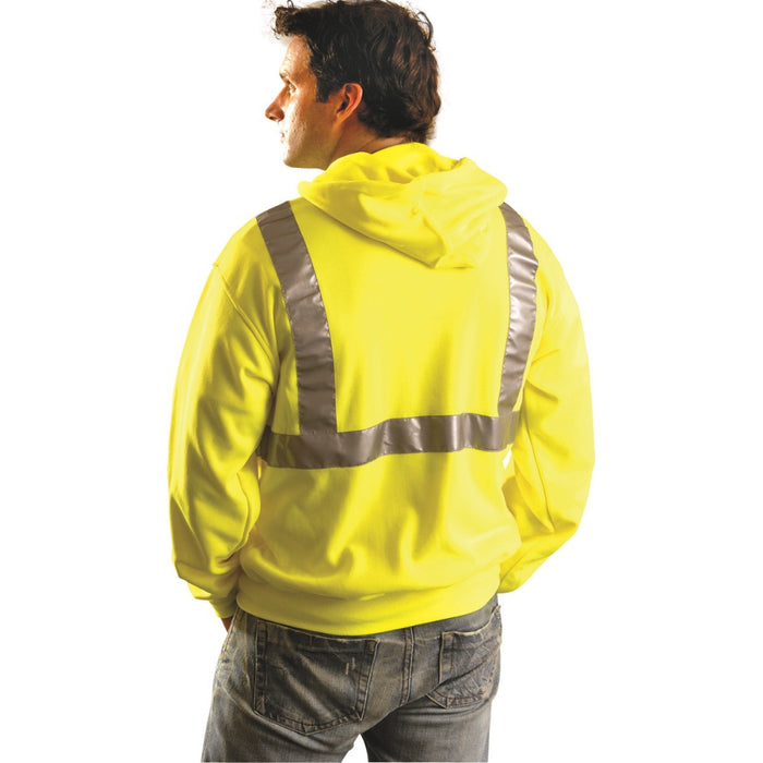 Keep warm and stay visible in cooling weather with this OccuNomix LUX-SWTLHZ safety hoodie.